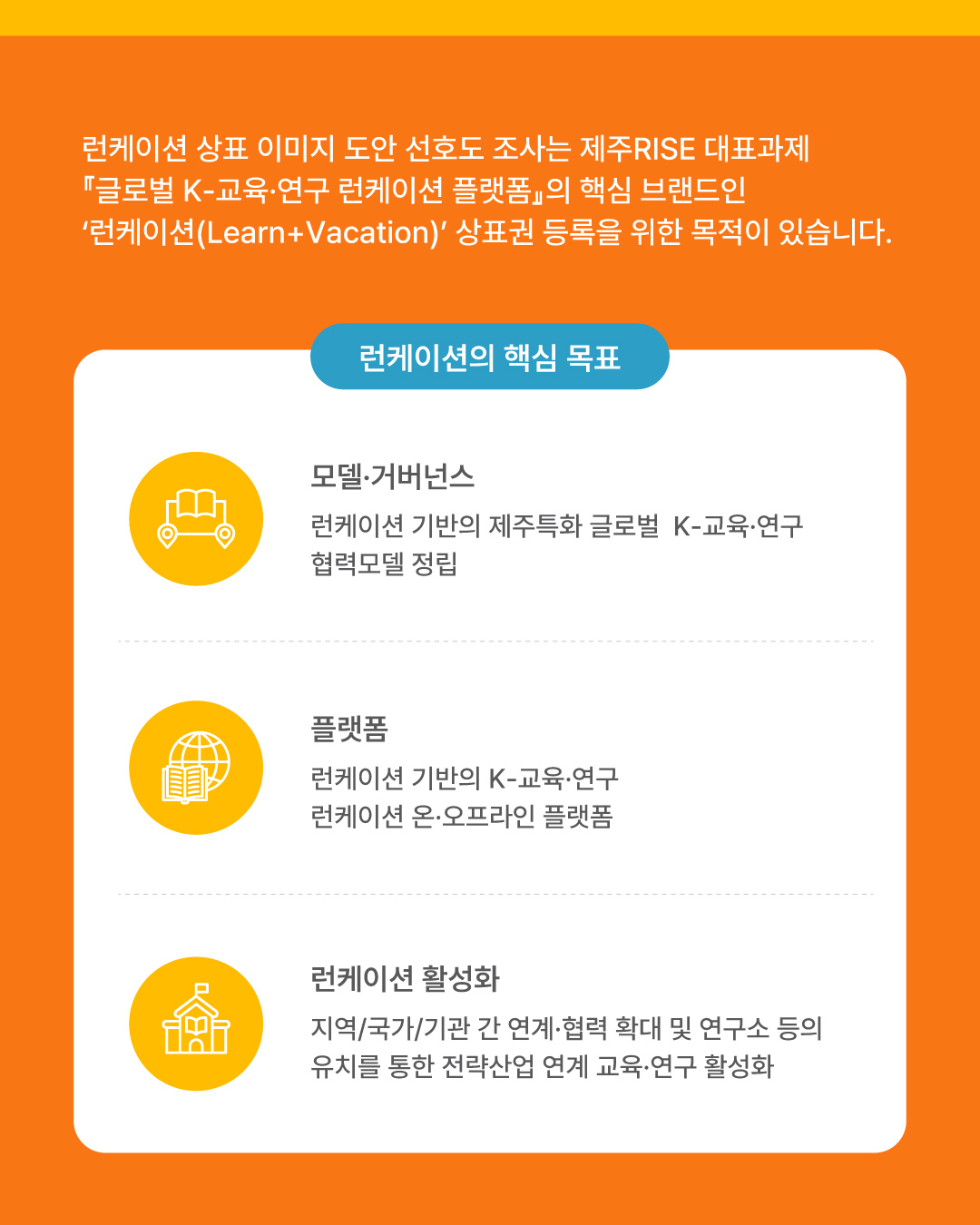 배움과 휴식을 동시에 즐기는 런케이션(Learncation)👉 브랜드 이미지를 여러분의 선택으로 완성해주세요!✔️ 참여 방법QR 코드 스캔 → 마음에 드는 BI 선택!소중한 한 표가 곧 제주 런케이션의 얼굴이 됩니다 🙌🏻함께 만들어가는 런케이션,지금 바로 참여해보세요!