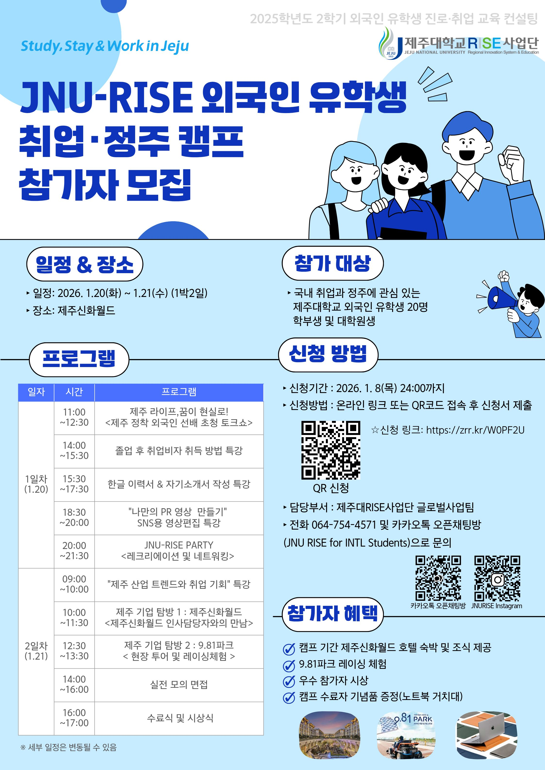 ㅇ 캠프 일정 : 2026. 1. 20.(화) ~ 1. 21.(수) / 제주신화월드 (숙식 제공, 버스 제공)