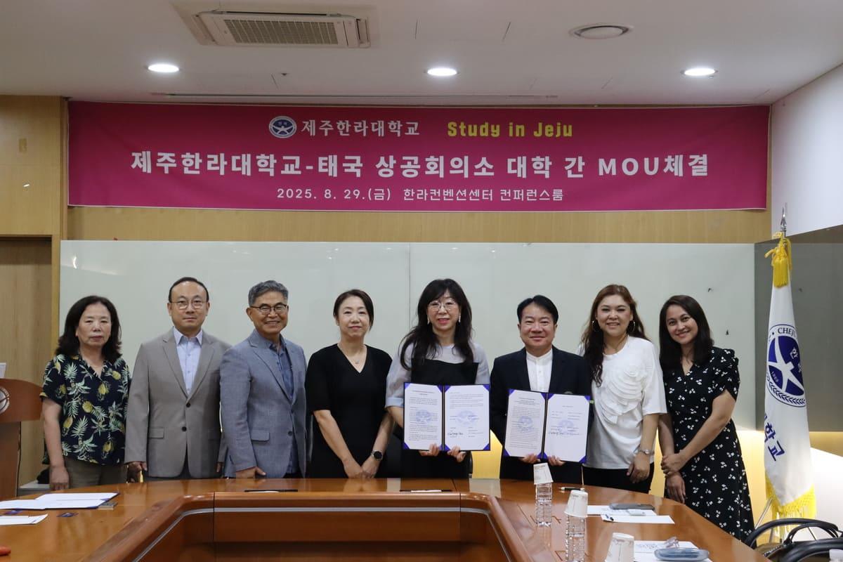 태국 상공회의소 대학(University of the Thai Chamber of Commerce, UTCC)은 태국의 대표적인 사립 종합대학으로, 1940년에 설립되었다. 태국 상공회의소가 직접 운영하는 이 대학은 경영·경제·무역 분야에서 특히 강점을 보유하고 있으며, 애플, 아마존 등 산업계와 긴밀한 연계를 통해 실무 중심의 교육을 제공한다. 현재 약 20,000명의 학생이 재학 중이며, 국제 교류와 글로벌 인재 양성에도 적극적으로 참여하고 있다. 이번 방문단은 UTCC의 교육 역량과 제주한라대학교의 국제 교류 인프라를 결합해 아시아권 글로벌 인재 육성 모델을 모색하고자 제주를 찾았다.