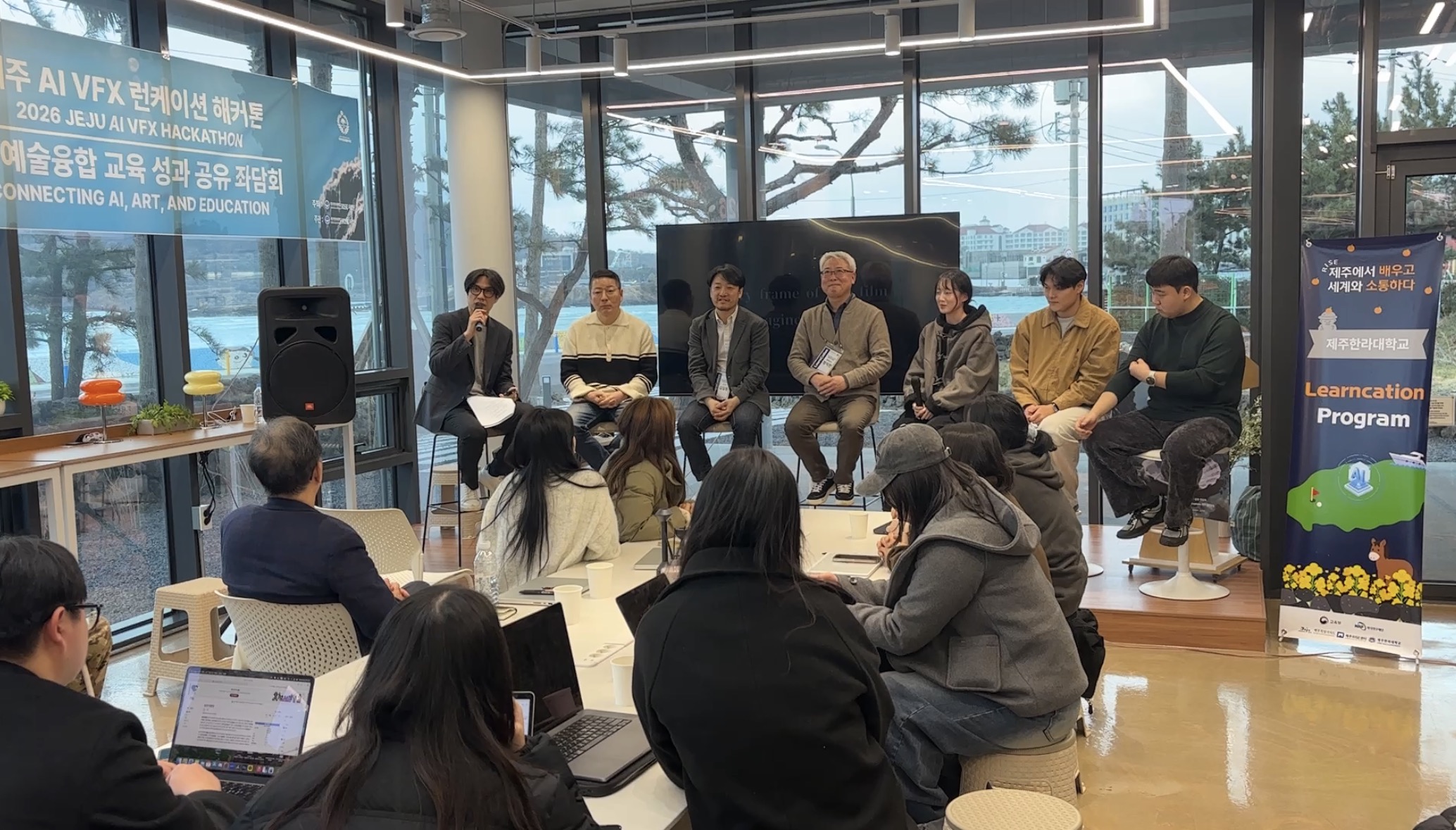 ❏ 제주한라대학교 RISE사업단(단장 고석용)은 지난 2026년 2월 7일, 제주시 조천읍 함덕 워케이션 센터에서 「2026 제주 AI·예술융합 교육 성과 공유 좌담회」를 성공적으로 개최했다고 밝혔다. 이번 좌담회는 AI와 예술을 결합한 교육 현장의 실제 성과를 공유하고, 창작·교육·산업 현장을 잇는 논의를 위해 마련된 자리로, AI 창작 교육에 참여한 학습자와 교육자, 산업 실무자, 평론가들이 함께했다.
