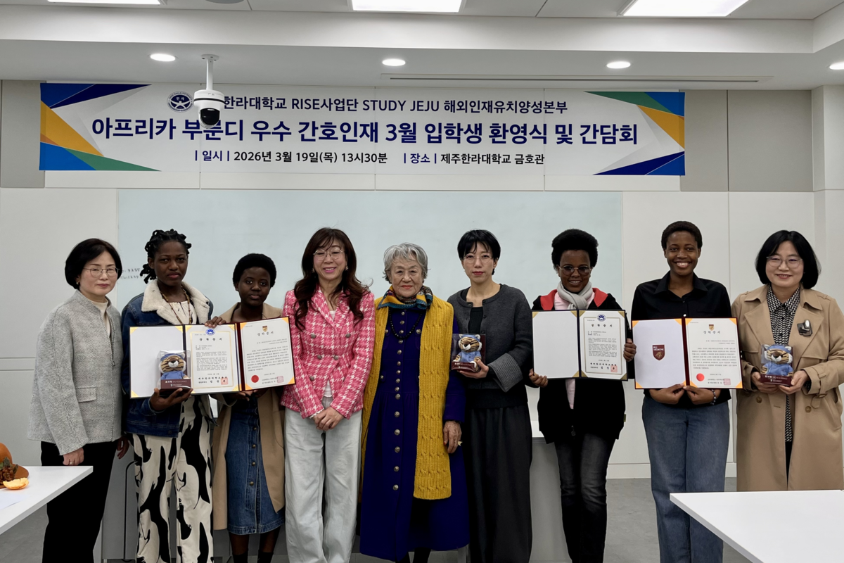 ❏ 제주한라대학교(총장 김성훈) RISE사업단 해외인재유치양성본부(본부장 신의경)는 3월 19일(목) 오후 1시 30분, 교내 금호관 2층 S-PBL실에서 아프리카 부룬디 간호 인재 3월 입학생 환영식 및 간담회를 개최했다고 밝혔다.