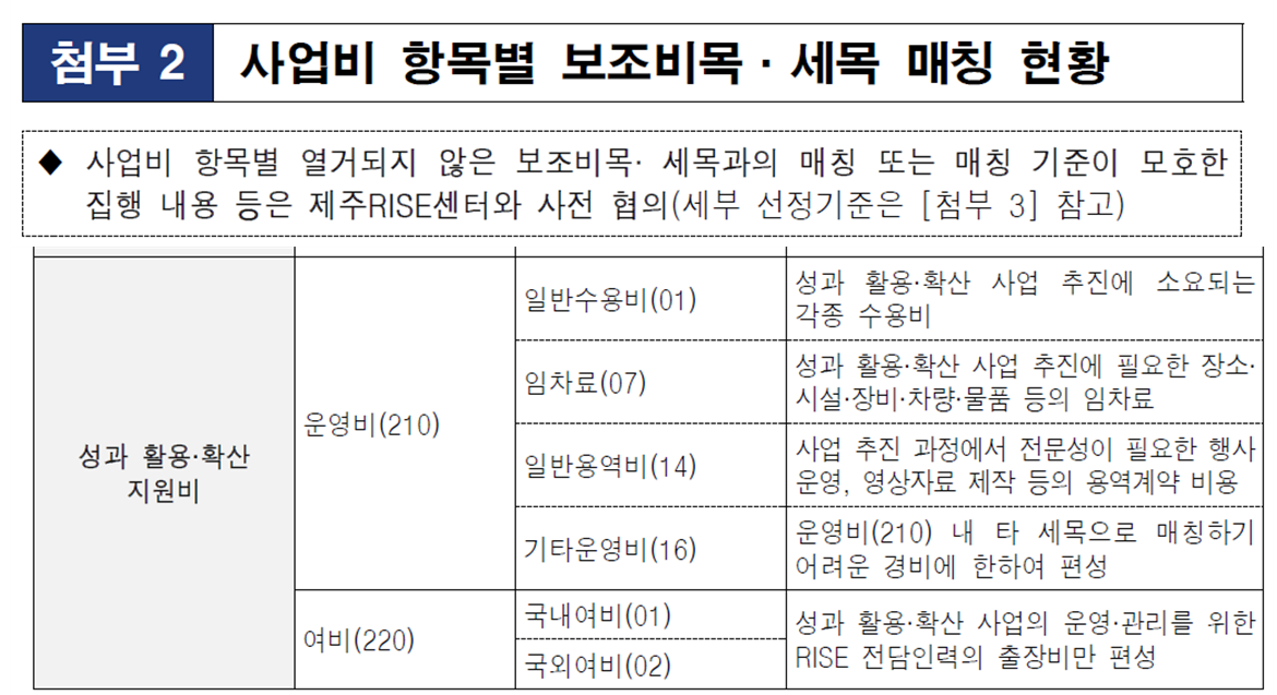 '성과활용 · 확산 지원비' 사용은 RISE 사업비 집행 및 관리지침-예산 항목별 세부 집행 기준'에 준하여
