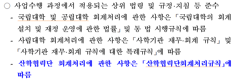 귀 사업단의 회계처리가 산학협력단에서 이뤄진다면 [산학협력단 회계처리규칙]에 준하여 운영해 주시기 바랍니다