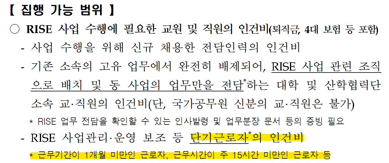저희 사업단에서는 교육부 사업비 집행 및 관리지침에 의거 단기근로자를 채용하였으며, 관련 지침은 아래와 같습니다.
