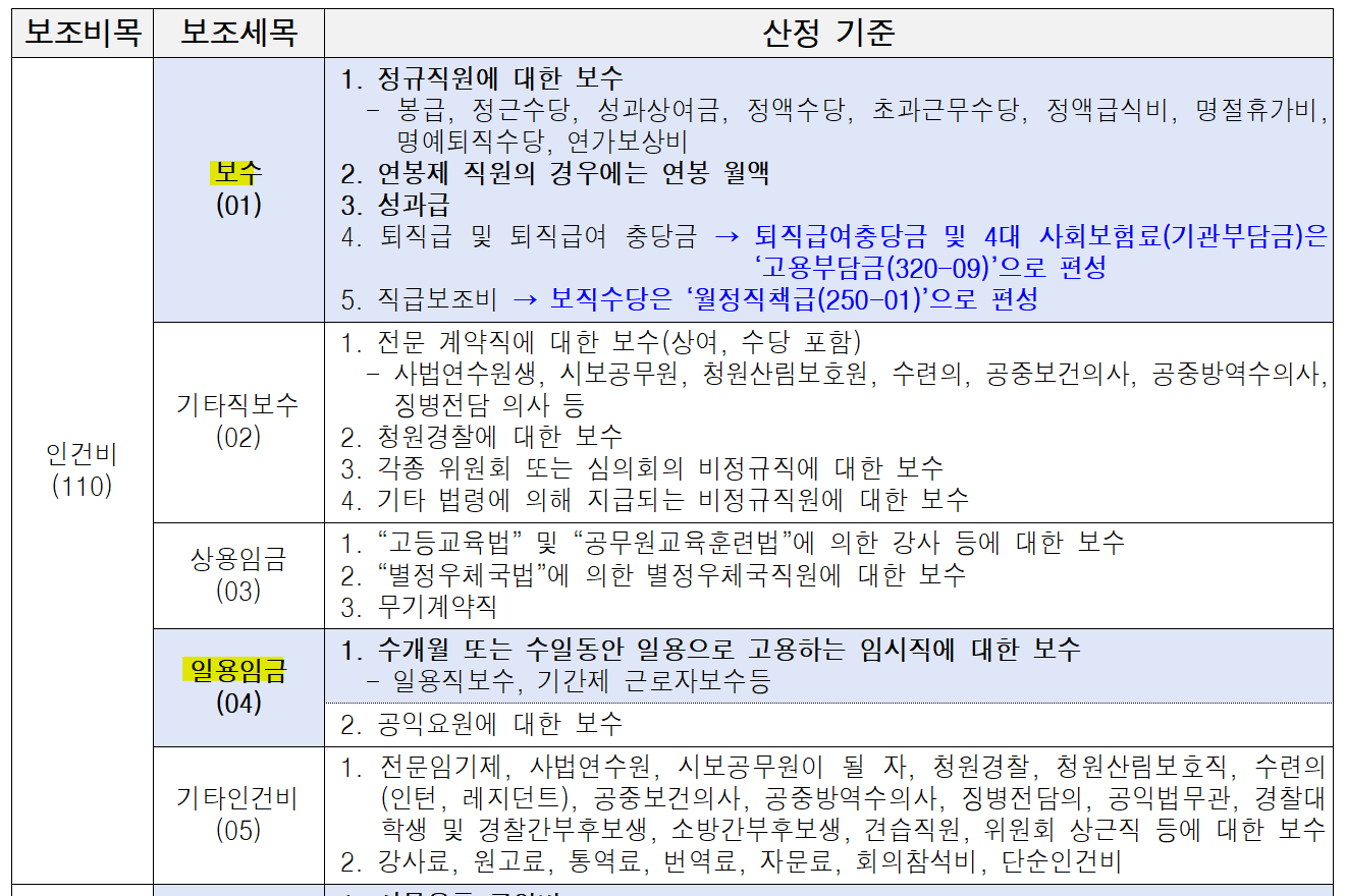 보수(01)은 정규직원의 보수, 연봉제, 성과급 등에 해당되기 때문에