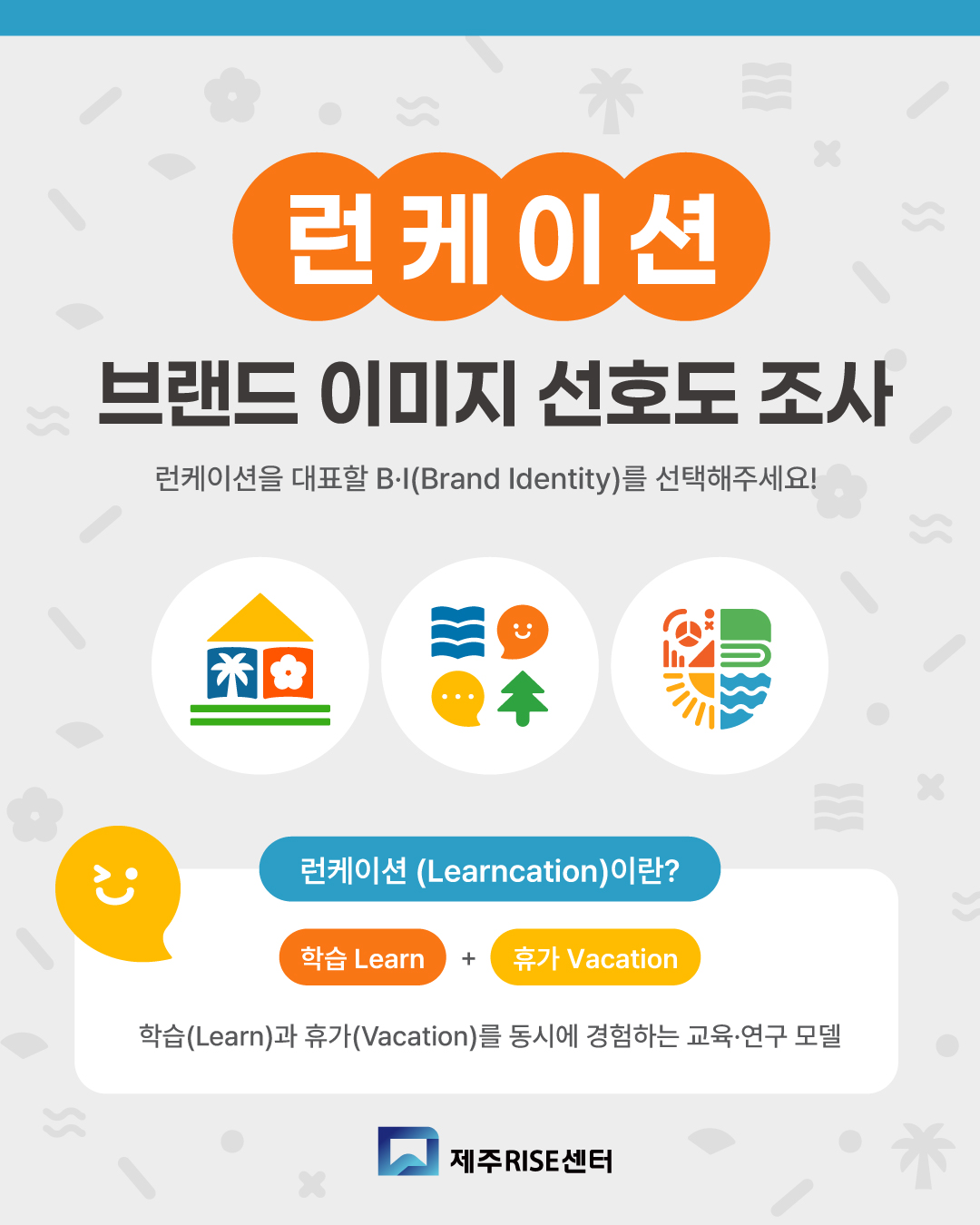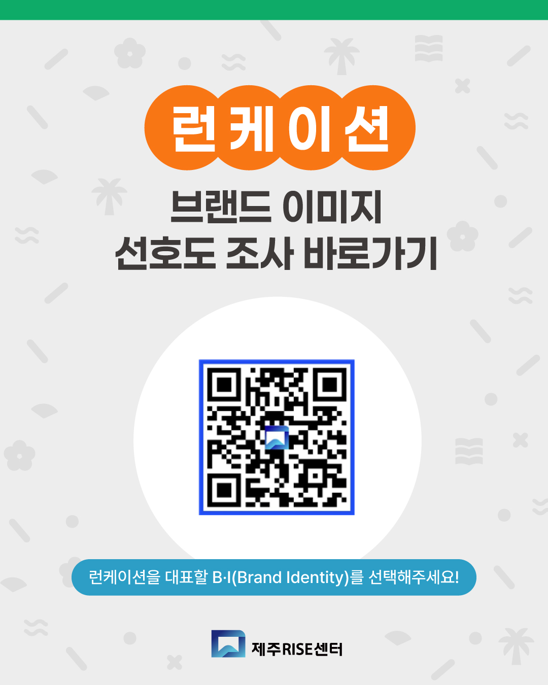 배움과 휴식을 동시에 즐기는 런케이션(Learncation)👉 브랜드 이미지를 여러분의 선택으로 완성해주세요!✔️ 참여 방법QR 코드 스캔 → 마음에 드는 BI 선택!소중한 한 표가 곧 제주 런케이션의 얼굴이 됩니다 🙌🏻함께 만들어가는 런케이션,지금 바로 참여해보세요!