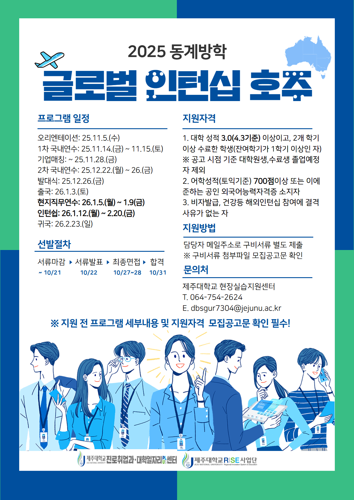 2025 동계방학 글로벌 인턴십 프로젝트(호주) 연수생 모집(~10/21)