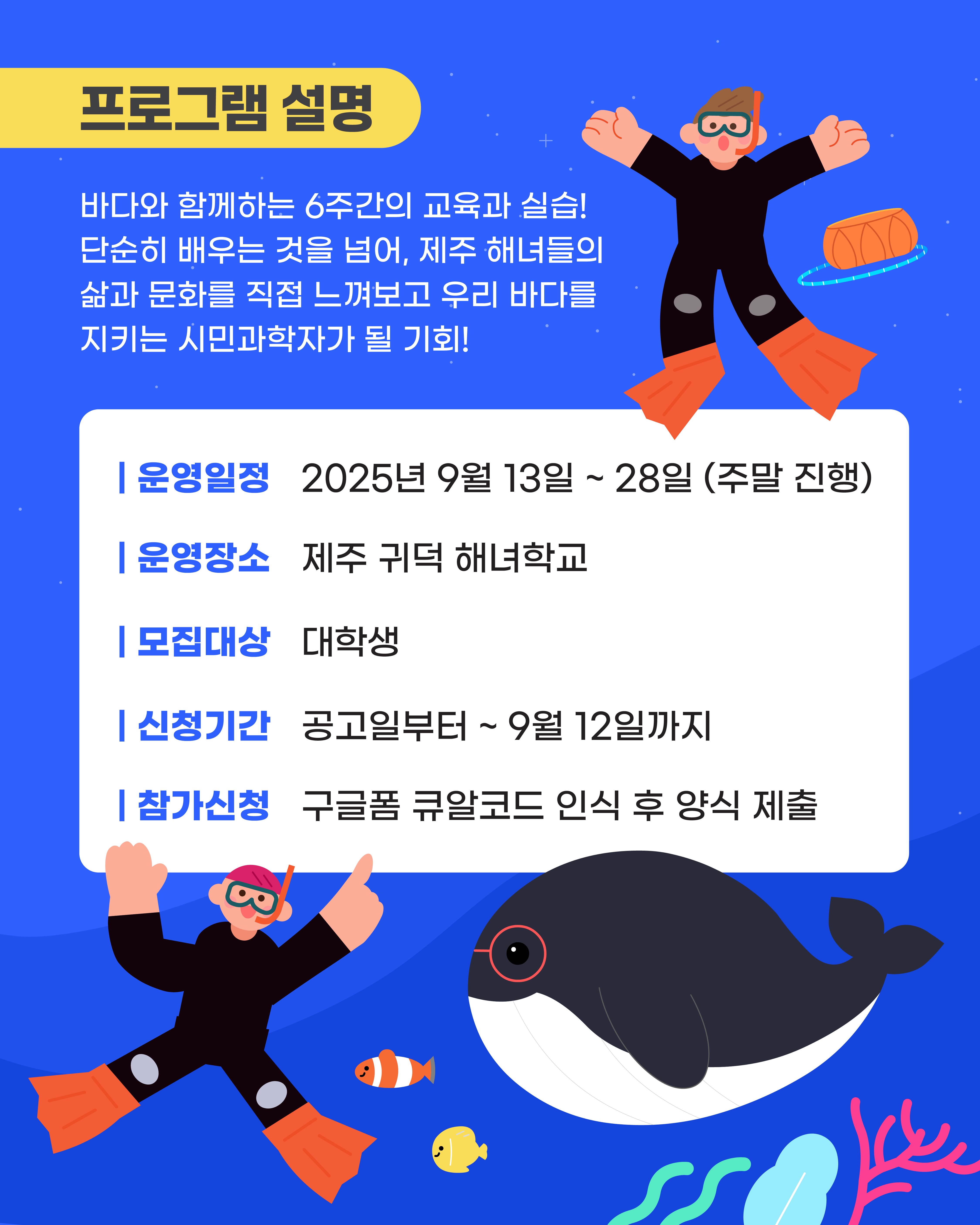 제주의 바다와 해녀의 지혜를 함께 배우고 싶은 분들의 많은 참여 기다립니다!