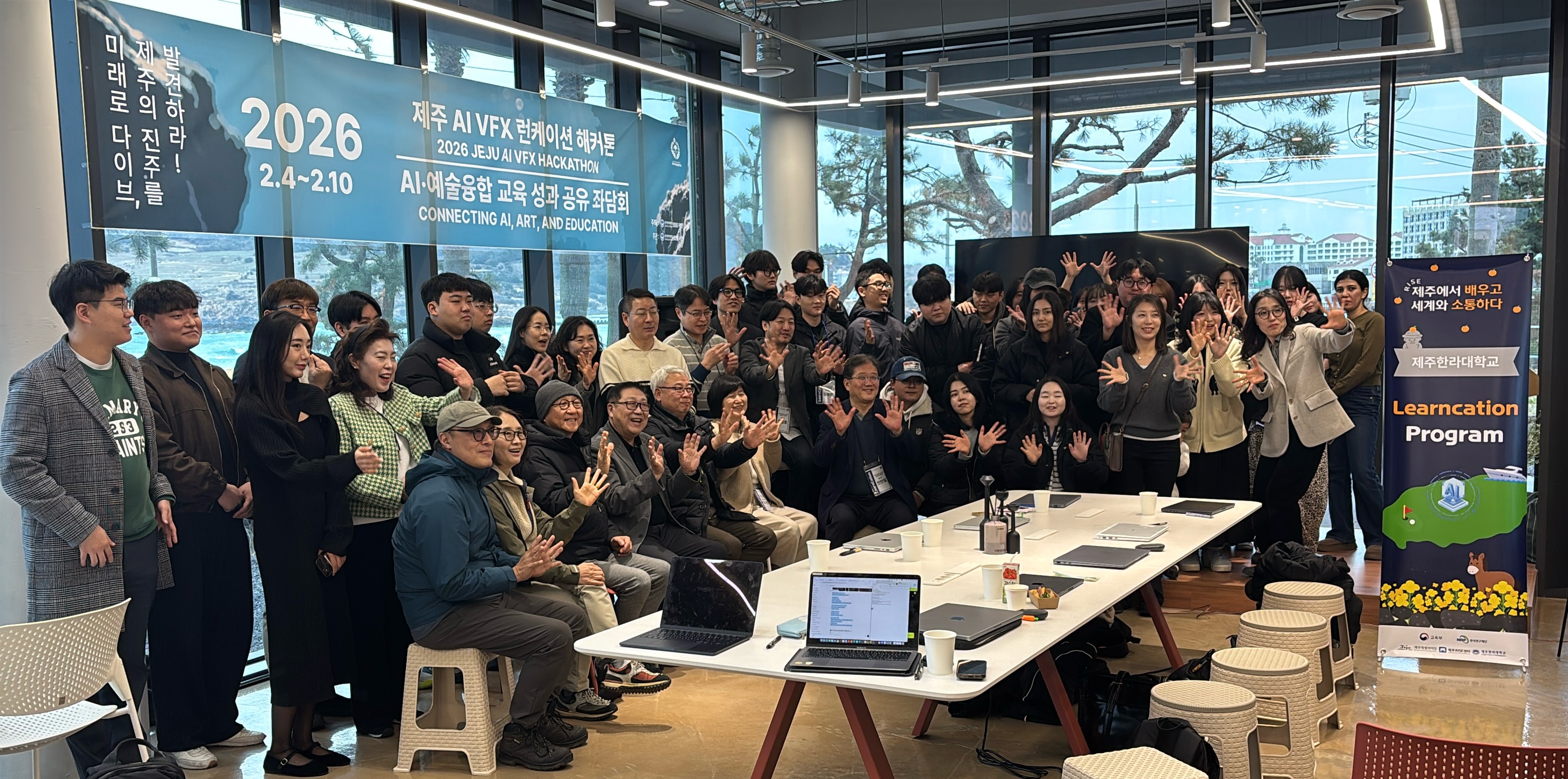 ❏ 제주한라대학교 RISE사업단(단장 고석용)은 지난 2026년 2월 7일, 제주시 조천읍 함덕 워케이션 센터에서 「2026 제주 AI·예술융합 교육 성과 공유 좌담회」를 성공적으로 개최했다고 밝혔다. 이번 좌담회는 AI와 예술을 결합한 교육 현장의 실제 성과를 공유하고, 창작·교육·산업 현장을 잇는 논의를 위해 마련된 자리로, AI 창작 교육에 참여한 학습자와 교육자, 산업 실무자, 평론가들이 함께했다.