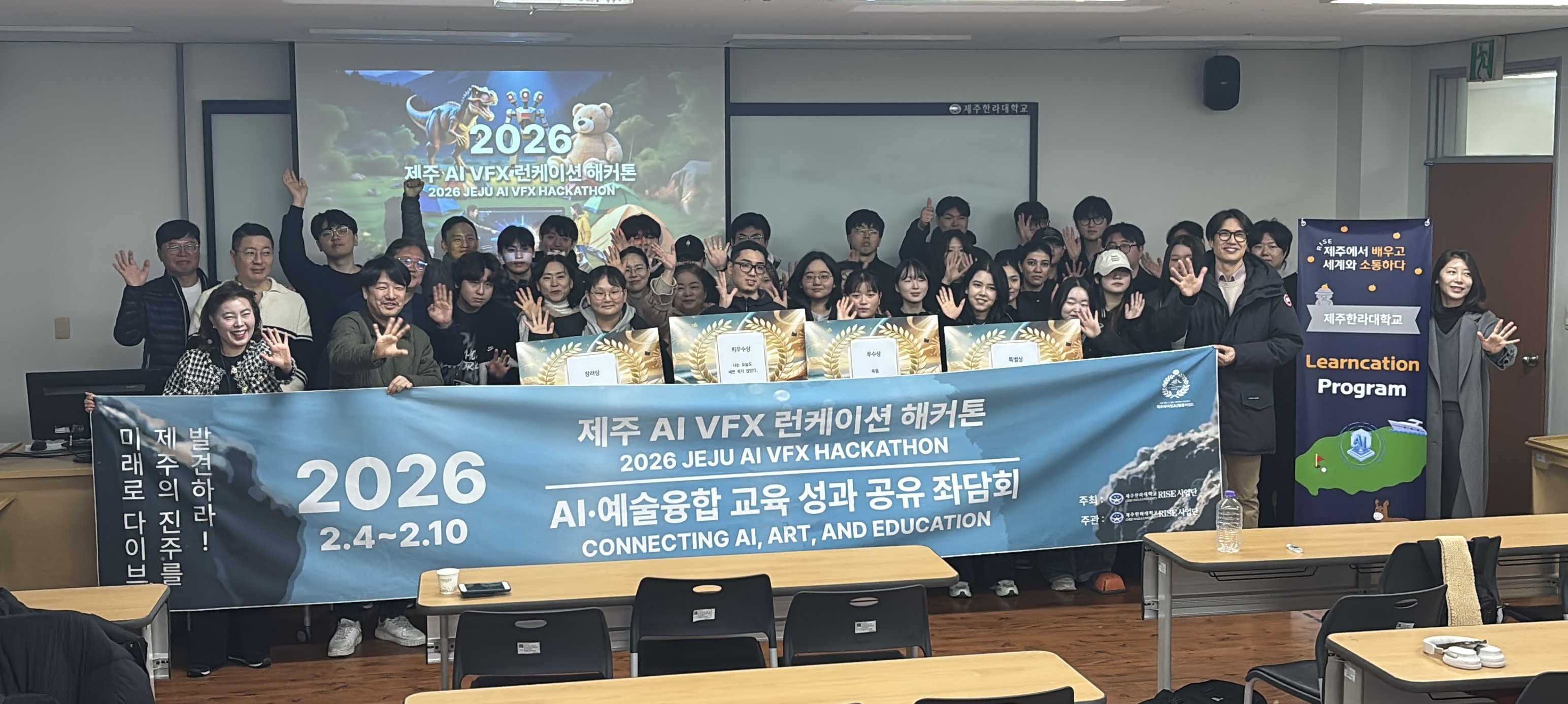 ❏ 제주한라대학교 RISE사업단(단장 고석용)은 2026년 2월 4일부터 10일까지 7일간 제주한라대학교 및 제주도 일원에서 ‘2026 제주 AI VFX 런케이션 해커톤(Jeju AI VFX Learncation Hackathon)’을 개최했다.